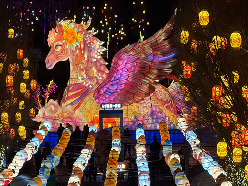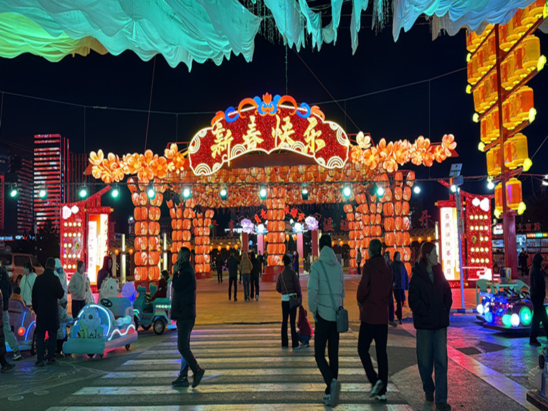 花好月圆人团圆,和家人、朋友去观看春节期间的各种演出,去欣赏新春里的每一处风景。放下忙碌、放下疲惫,带着轻松、带着纯真,感受新春光彩夺目的世界,感受各种美食带来舌尖上的诱惑。套圈、打气球等这些我们童年记忆里的游戏,此时仿佛把我们带到了无忧无虑的美好童年。一幢幢高楼大厦巍峨挺立,灯光变幻着各种造型和颜色,马年的祝福让此刻更加亲切。东胜铁西公园以其独特的魅力吸引无数人前来观赏。那龙马腾飞的造型、那奇特美丽的中国地图、那心想事成的灯笼、那万紫千红的灯光花朵、那形态各异的十二生肖......真是引人入胜,美丽极了。拍拍照、打打卡,在新春佳节之际,将此刻的美好留住。在这里我们感受到了人间的真情,春的暖意。